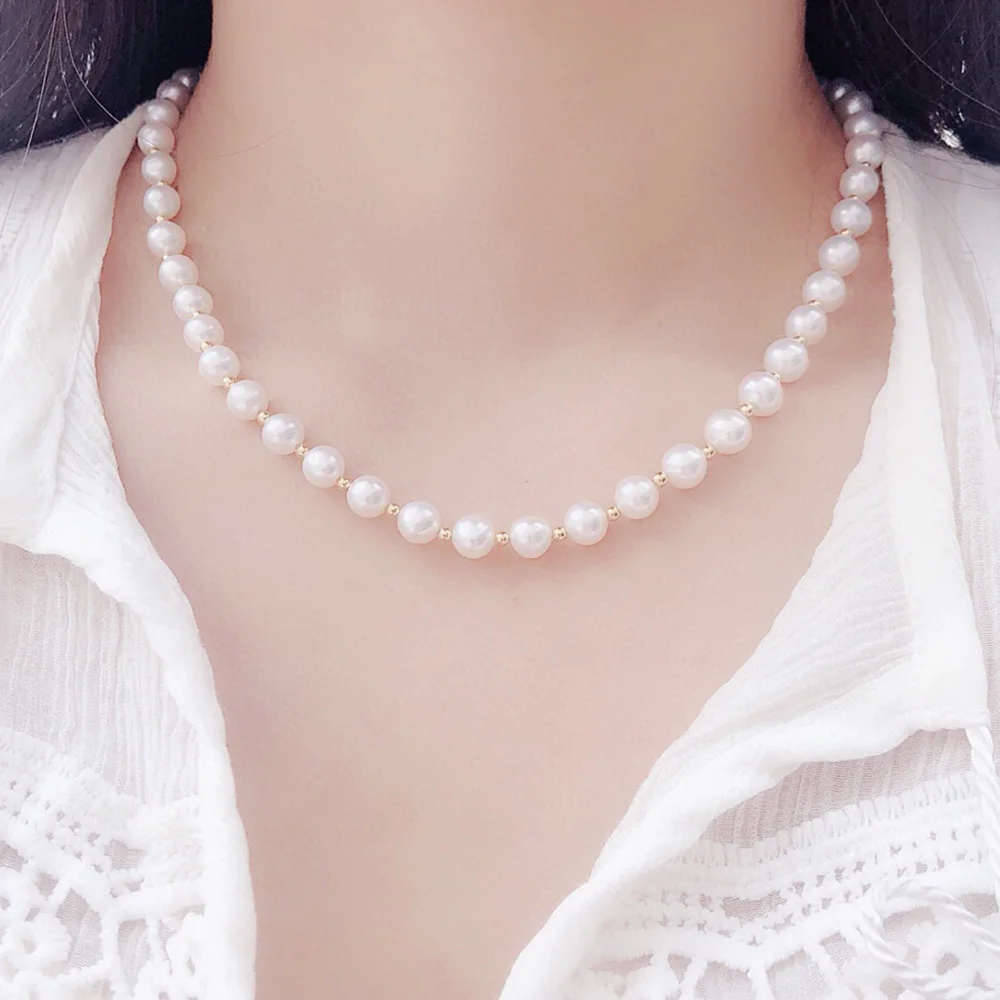Special Offer Madalena Sarara Aaa 8-9ミリメートル淡水真珠のネックレスの女性パールジュエリーナチュラルホワイトラウンド形状S925 Clasp18kゴールドクラスプ Discount (6%OFF) Today!